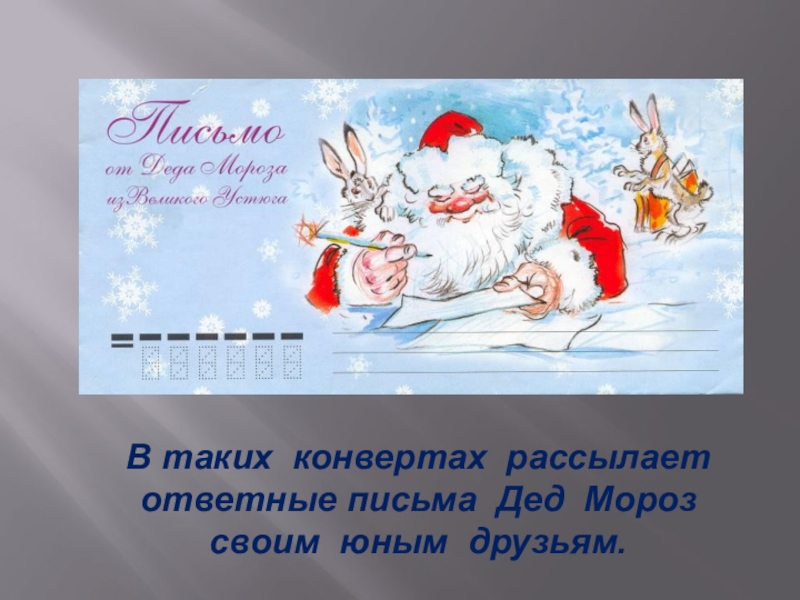 Слайд 31В таких конвертах рассылает ответные письма Дед Мороз своим юным друзьям.