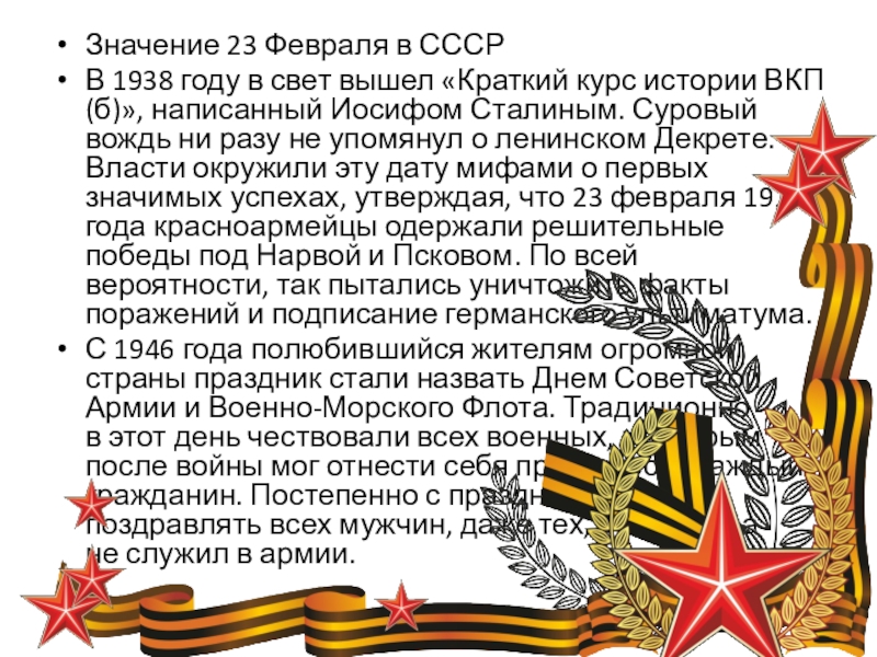 практически сразу же после новогодних праздников. Однако, получая подарки, мало кто из представителей сильного пола задумывается о том, откуда появился этот важный праздник и почему его отмечают именно в холодном феврале.