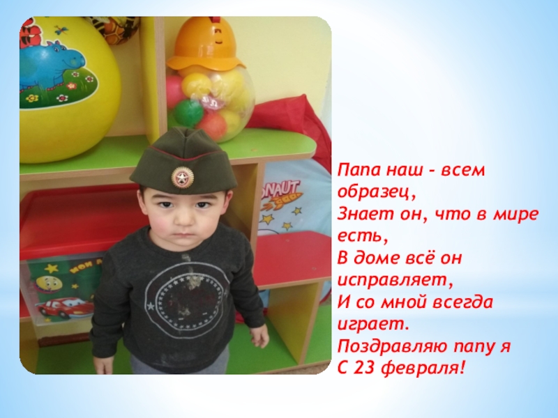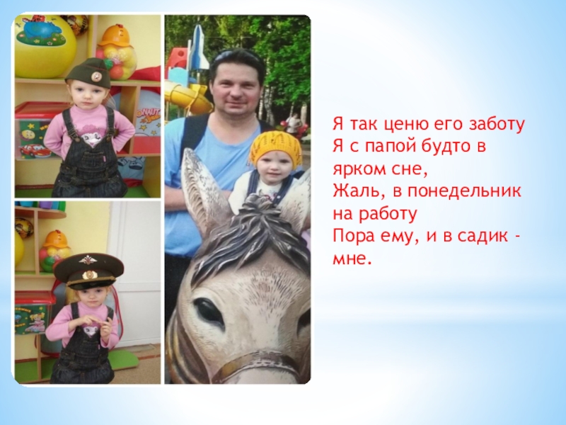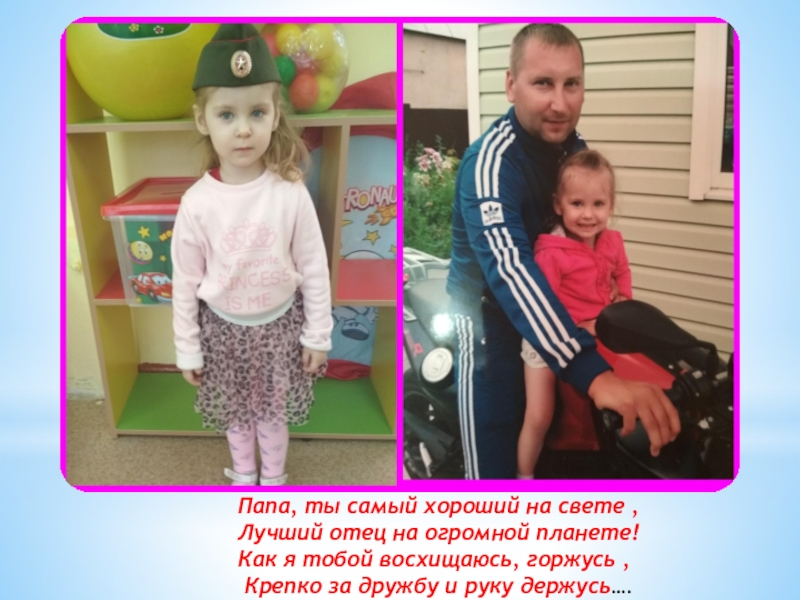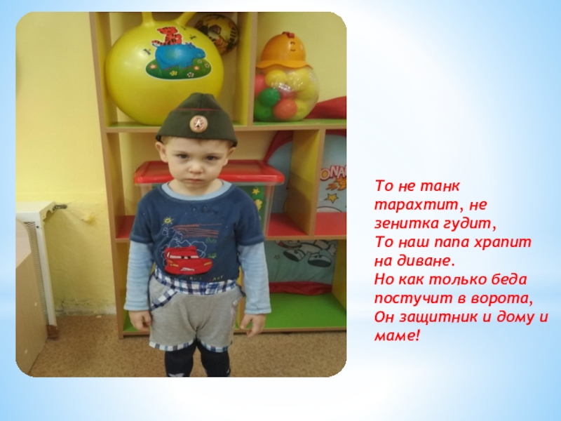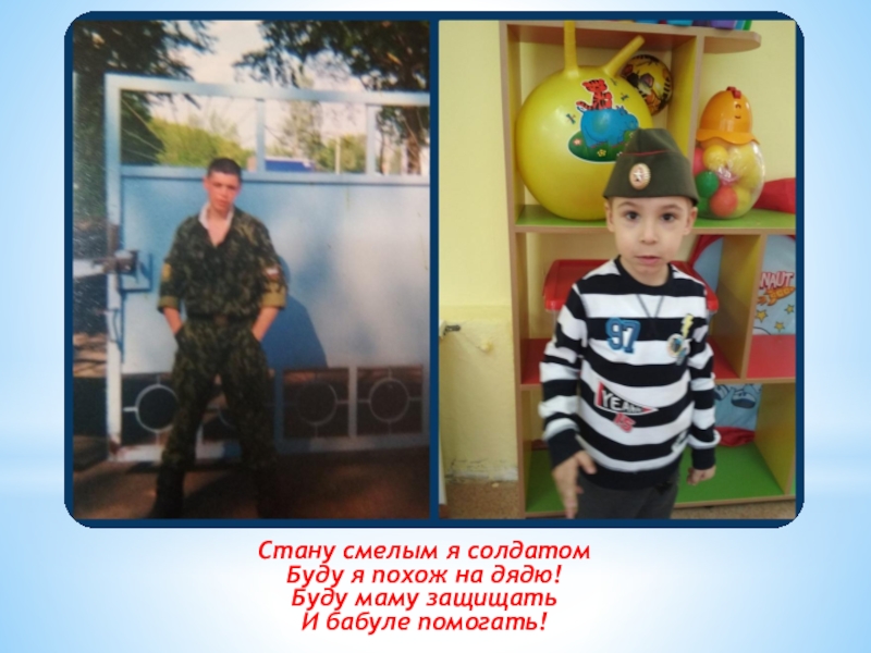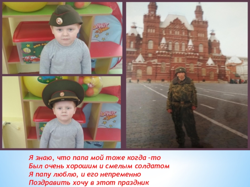 Я знаю, что папа мой тоже когда –то Был очень хорошим и смелым солдатом Я папу люблю,