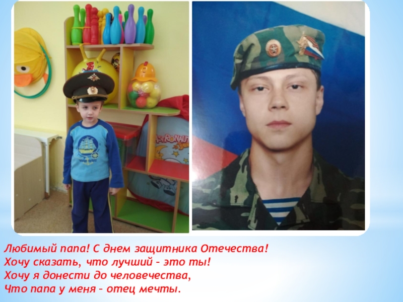 Любимый папа! С днем защитника Отечества!Хочу сказать, что лучший – это ты!Хочу я донести до человечества,Что папа