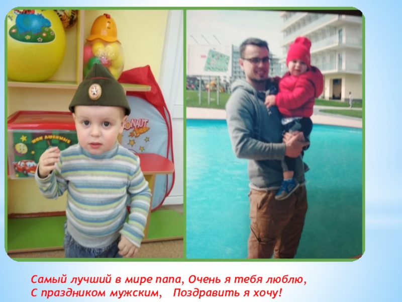 Самый лучший в мире папа, Очень я тебя люблю,С праздником мужским,  Поздравить я хочу!