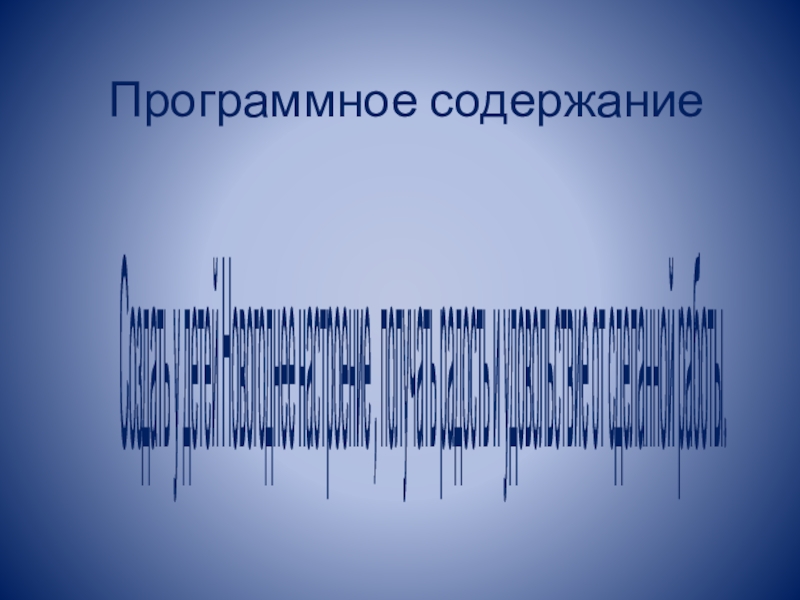 Программное содержаниеСоздать у детей Новогоднее настроение , получать радость и удовольствие от сделанной работы.