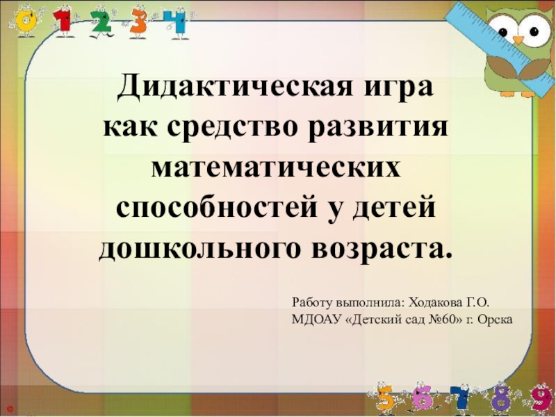 Слайд 1Дидактическая игра как средство развития математических способностей у детей дошкольного возраста.