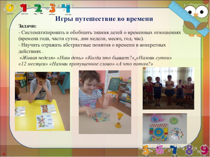 - Научить отражать абстрактные понятия о времени в конкретных действиях .