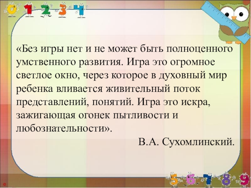 Слайд 2«Без игры нет и не может быть полноценного умственного развития. Игра
