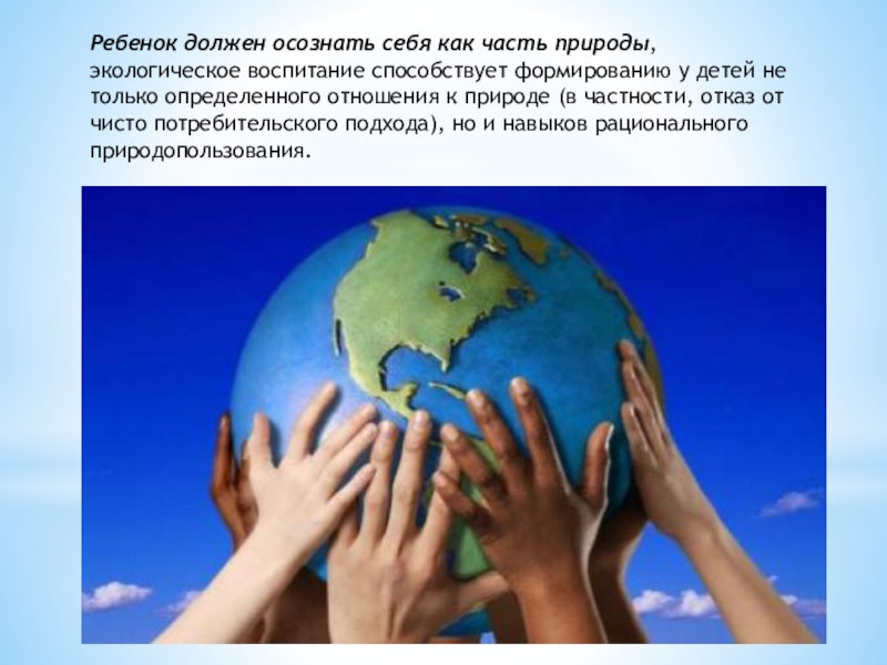 Слайд 5Ребенок должен осознать себя как часть природы,