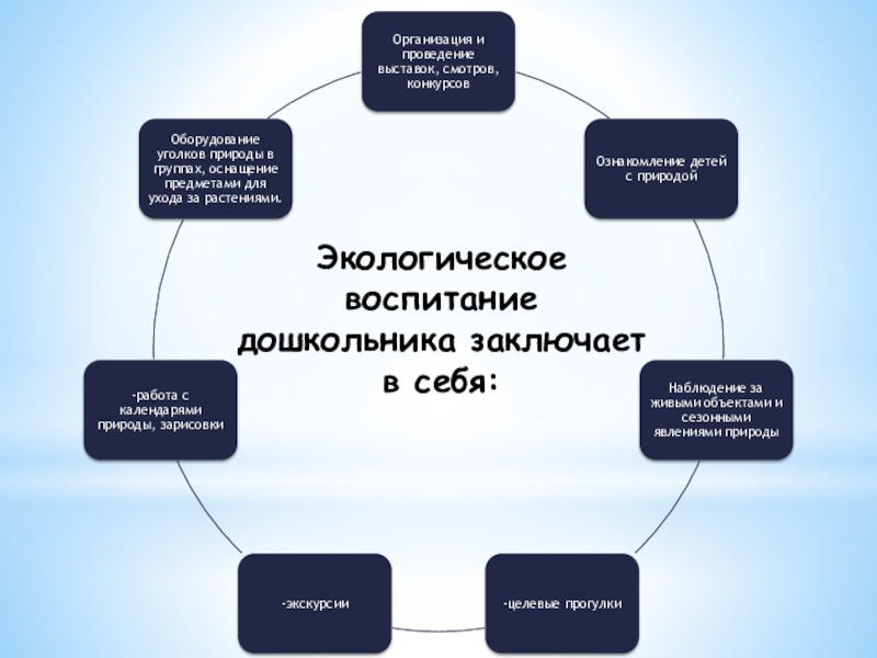 Слайд 6Экологическое воспитание дошкольника заключает в себя: