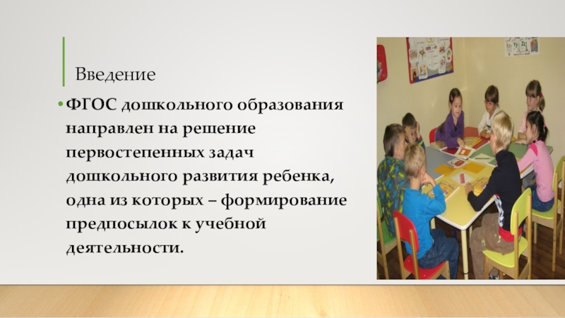 Презентация, доклад НА ТЕМУ ФОРМИРОВАНИЕ ПРЕДПОСЫЛОК К УЧЕБНОЙ ДЕЯТЕЛЬНОСТИ У ДОШКОЛЬНИКОВ