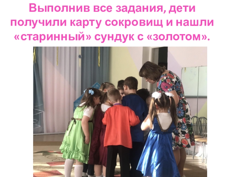 Слайд 8Выполнив все задания, дети получили карту сокровищ и нашли «старинный» сундук