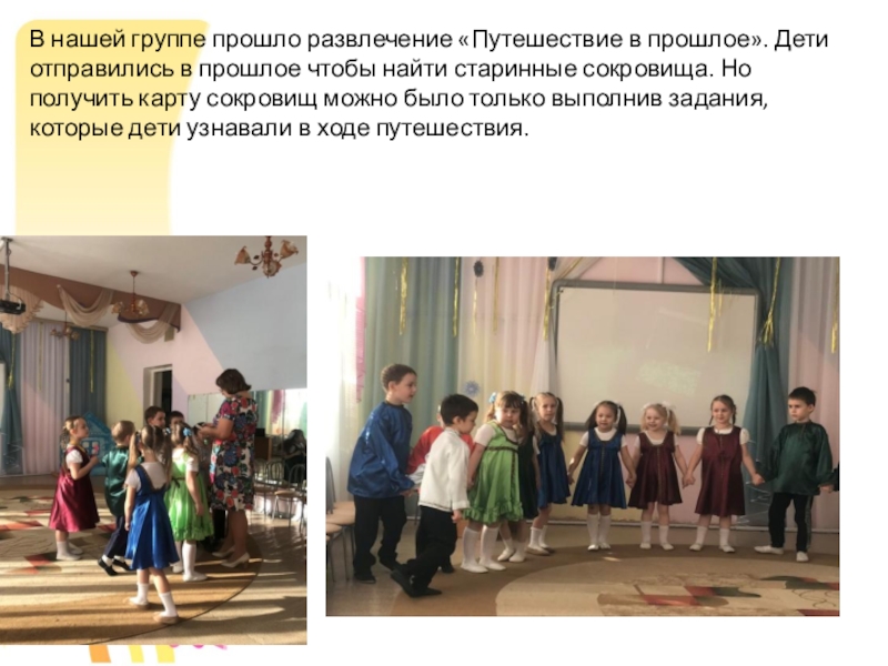 Слайд 3В нашей группе прошло развлечение «Путешествие в прошлое». Дети отправились в