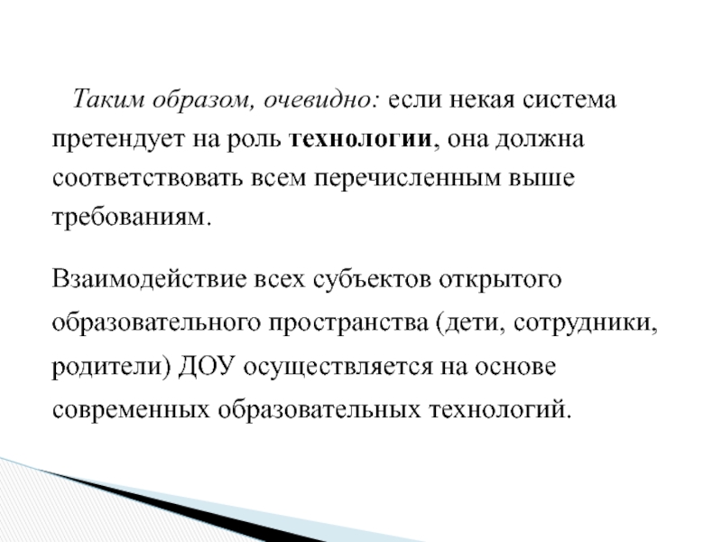 Слайд 7 Таким образом, очевидно: если некая система претендует на роль технологии, она должна