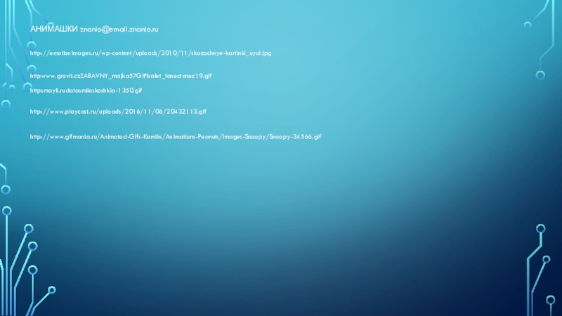 Это сайт презентаций, где можно хранить и обмениваться своими презентациями, докладами, проектами, шаблонами в формате PowerPoint с другими пользователями. Мы помогаем школьникам, студентам, учителям, преподавателям хранить и обмениваться учебными материалами.