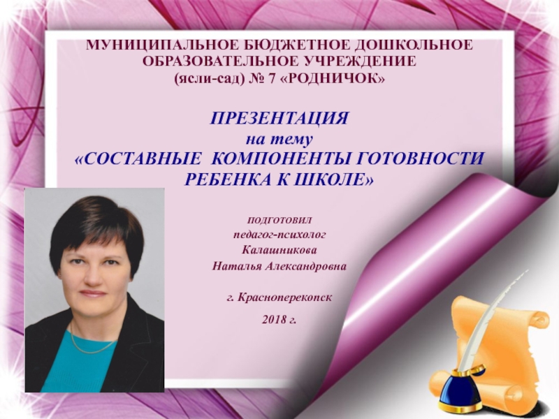 КОМПОНЕНТЫ ГОТОВНОСТИ РЕБЕНКА К ШКОЛЕ»