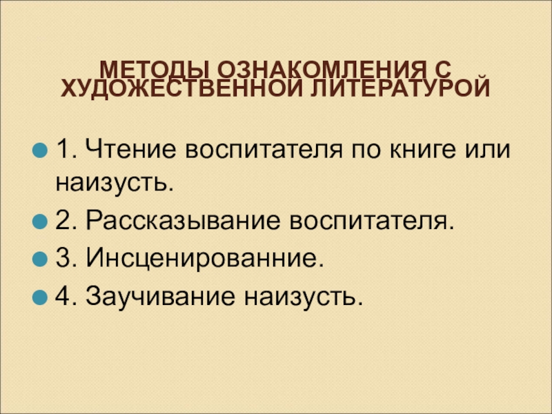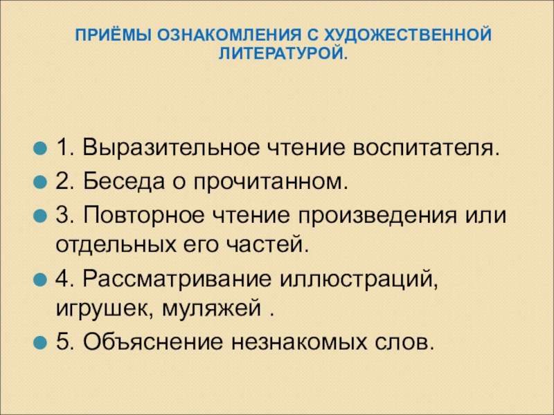 Слайд 21ПРИЁМЫ ОЗНАКОМЛЕНИЯ С ХУДОЖЕСТВЕННОЙ ЛИТЕРАТУРОЙ.