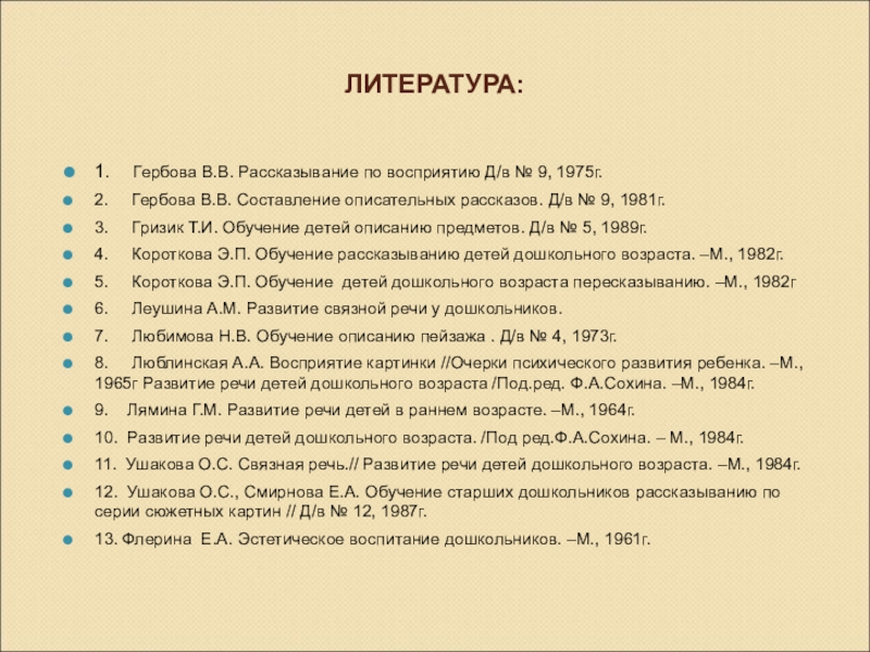 2. Гербова В.В. Составление описательных рассказов. Д/в № 9, 1981г.