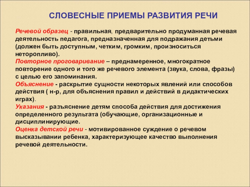 Слайд 16СЛОВЕСНЫЕ ПРИЕМЫ РАЗВИТИЯ РЕЧИ