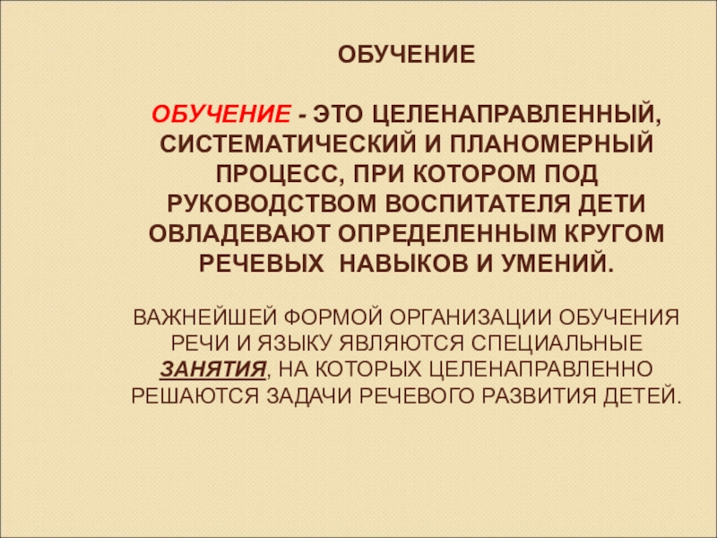 ОБУЧЕНИЕ - ЭТО ЦЕЛЕНАПРАВЛЕННЫЙ, СИСТЕМАТИЧЕСКИЙ И ПЛАНОМЕРНЫЙ ПРОЦЕСС, ПРИ КОТОРОМ