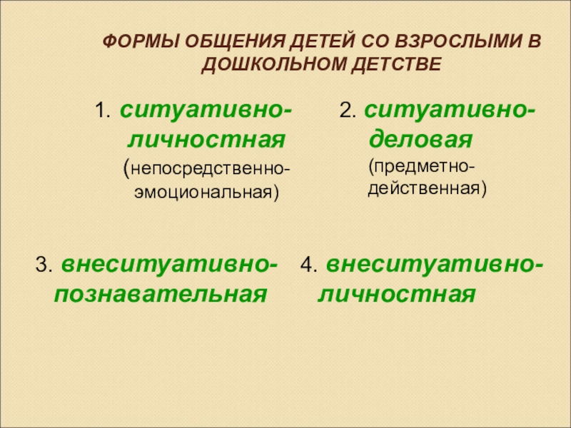 ФОРМЫ ОБЩЕНИЯ ДЕТЕЙ СО ВЗРОСЛЫМИ В ДОШКОЛЬНОМ ДЕТСТВЕ
