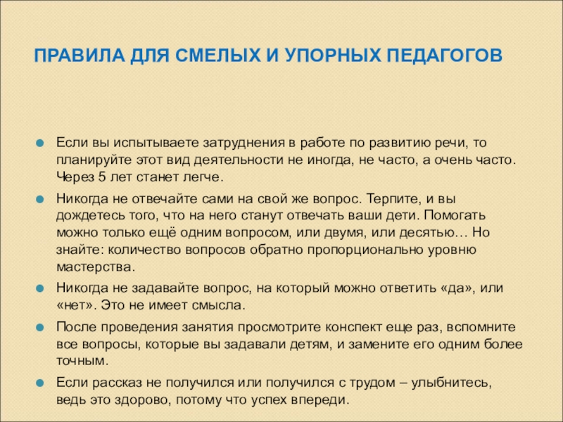 Слайд 23ПРАВИЛА ДЛЯ СМЕЛЫХ И УПОРНЫХ ПЕДАГОГОВ