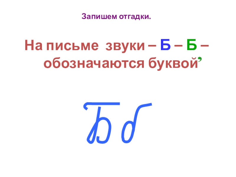 Запишем отгадки.На письме звуки – Б – Б – обозначаются буквой,