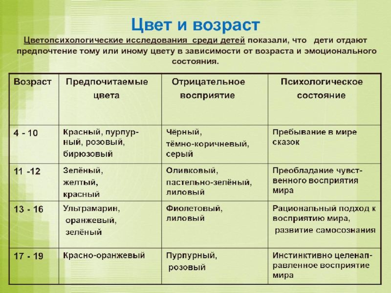 Слайд 4Цвет и возраст
