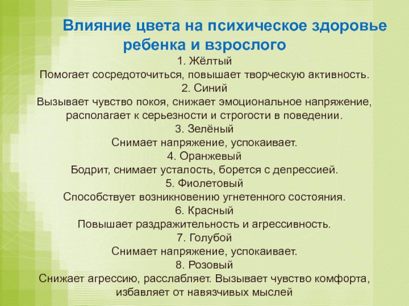 «Влияние цвета на эмоциональное развития человека».