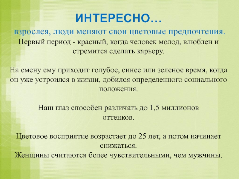 взрослея, люди меняют свои цветовые предпочтения.