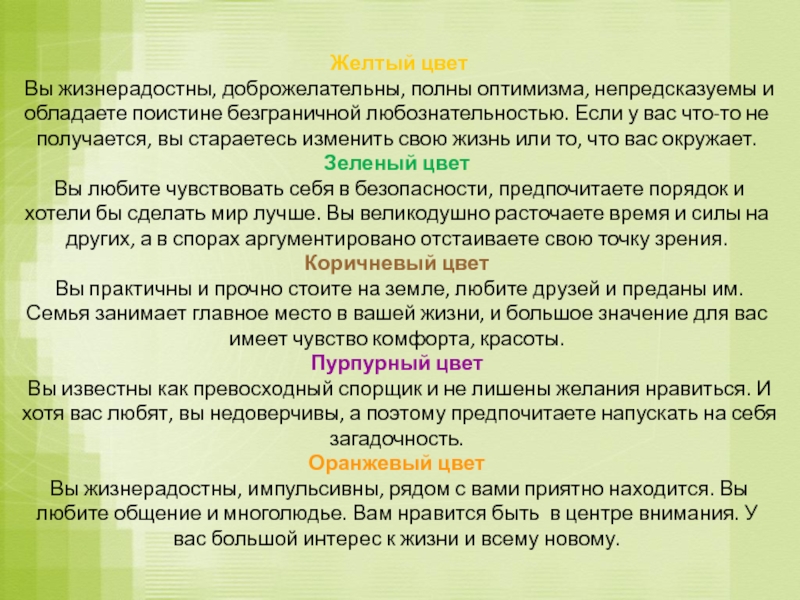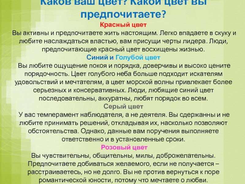 Каков ваш цвет? Какой цвет вы предпочитаете?