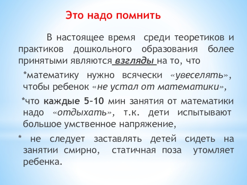 *что каждые 5–10 мин занятия от математики надо «отдыхать», т.к. дети испытывают большое умственное напряжение,