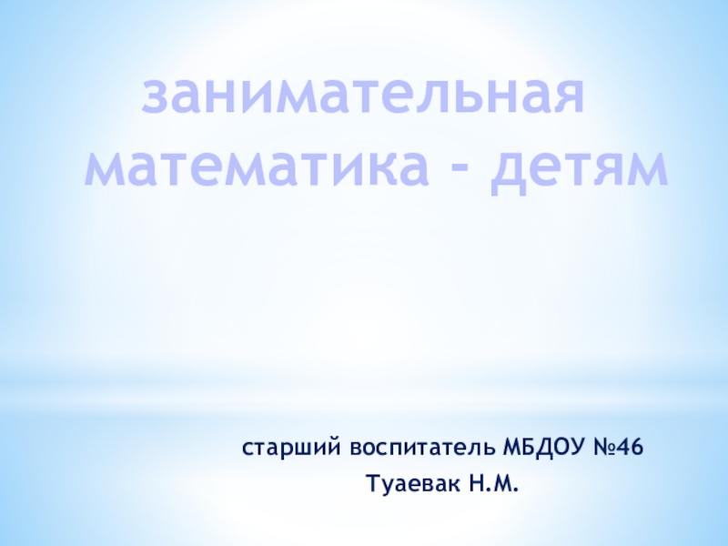 *математику нужно всячески «увеселять», чтобы ребенок «не устал от математики»,