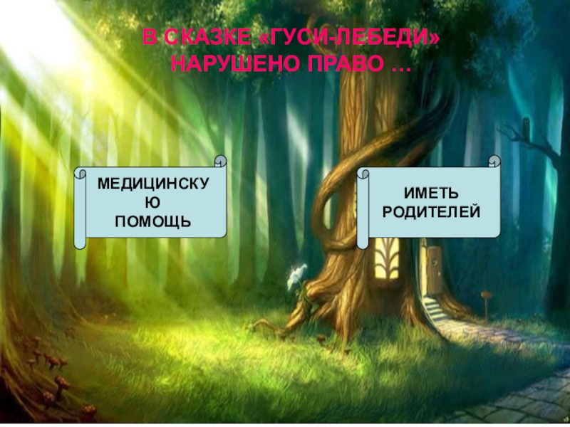 В СКАЗКЕ «ГУСИ-ЛЕБЕДИ» НАРУШЕНО ПРАВО …МЕДИЦИНСКУЮ ПОМОЩЬИМЕТЬ РОДИТЕЛЕЙ