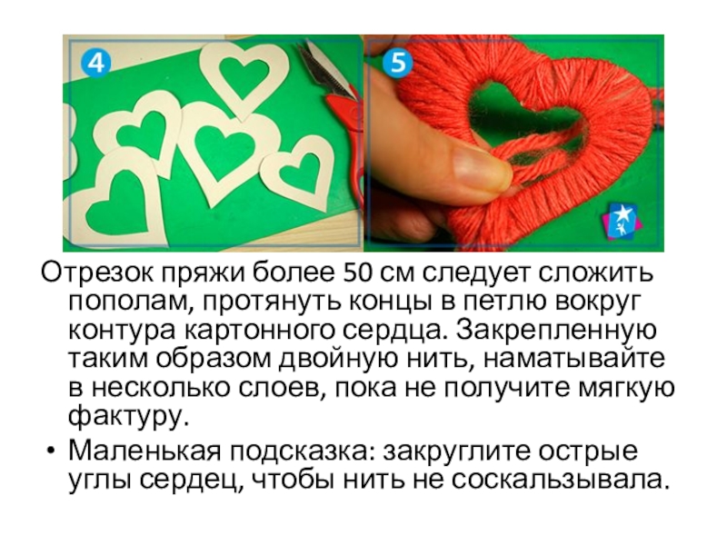 Презентация, доклад на урок Технология (Сердечко из пряжи)