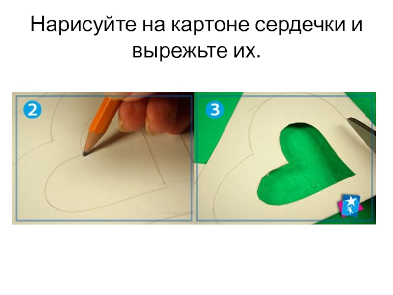 Слайд 3Нарисуйте на картоне сердечки и вырежьте их.