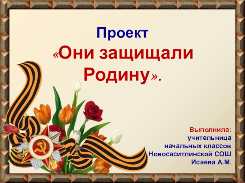 Проект  «Они защищали Родину».Выполнила: учительница начальных классов Новосаситлинской СОШ Исаева А.М.