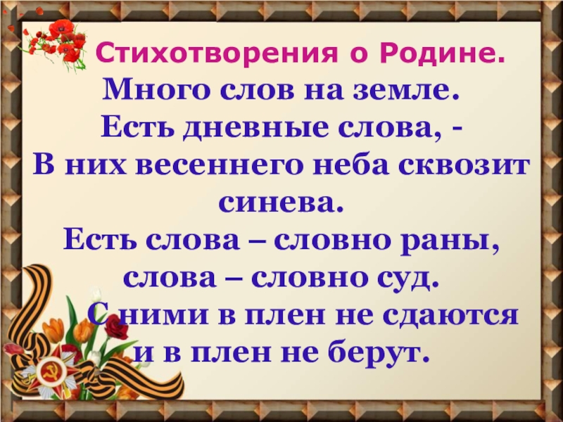 Стихотворения о Родине. Много слов на земле. Есть дневные слова, - В них весеннего неба