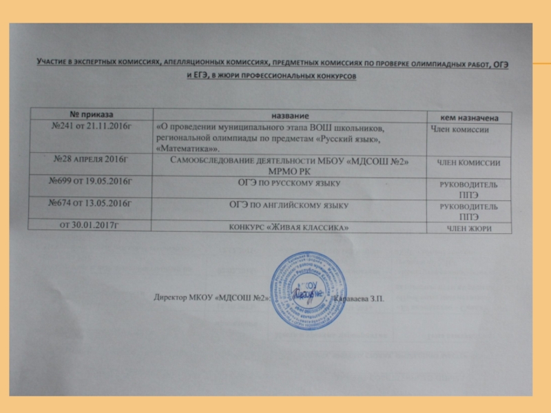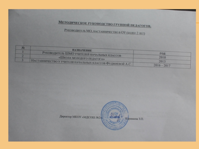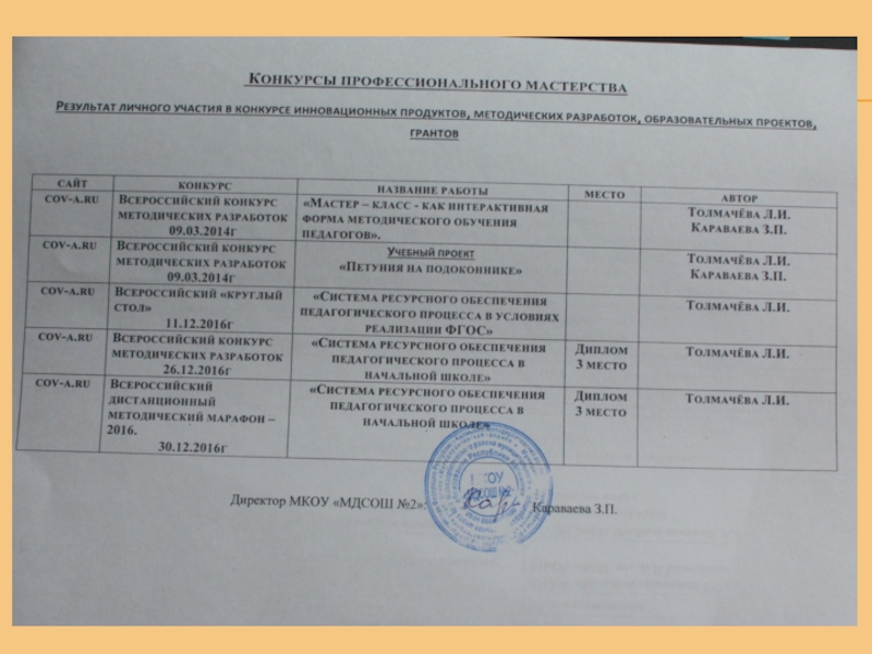 Стаж работы в данном учреждении: 25 лет Квалификационная категория: высшая