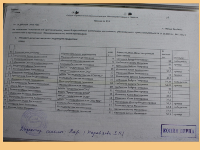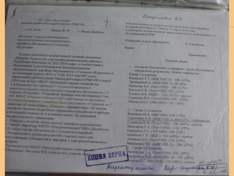 Грамота Главы Малодербетовского района РК - (2016 г);