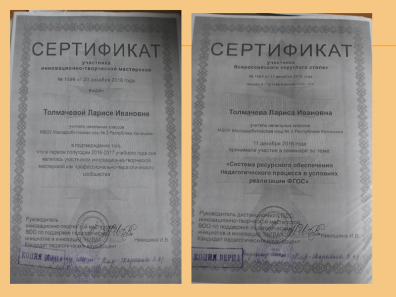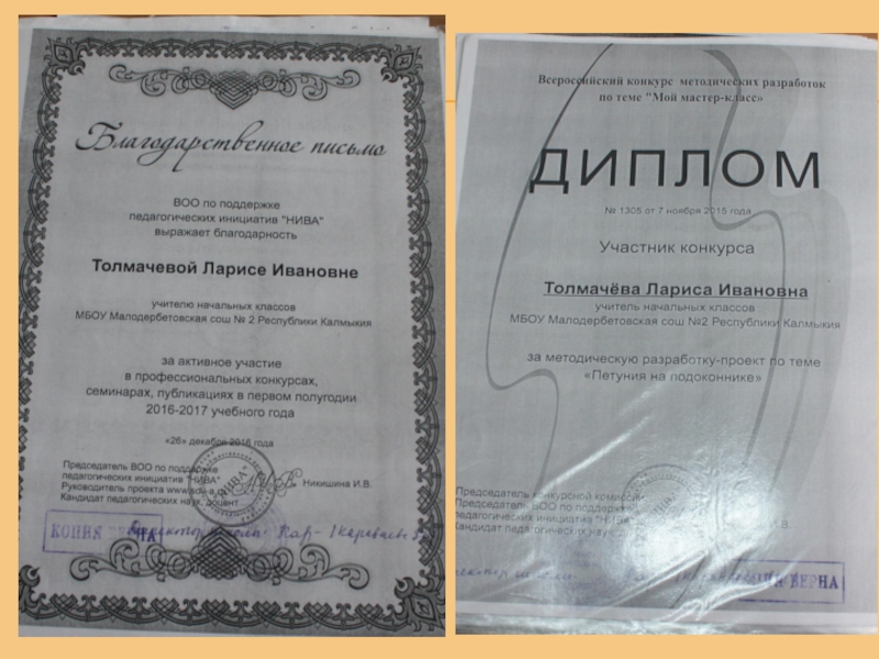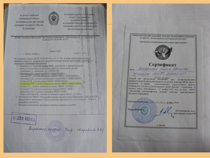 Грамота Главы Малодербетовского района РК - (2016 г);