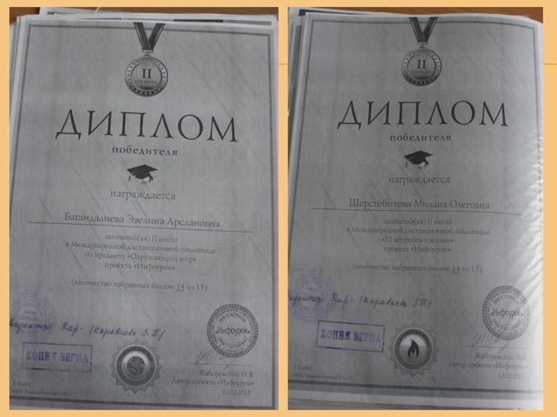 Диплом 3 степени «Учитель года -2007»;