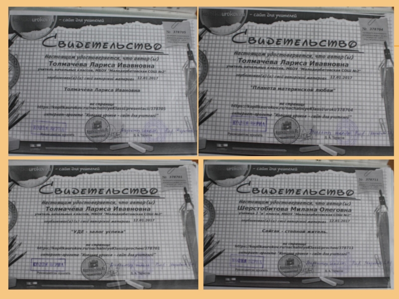 Награды: «Почетный работник общего образования РФ» - (2013г.); Грамота МО РК- (2005г);