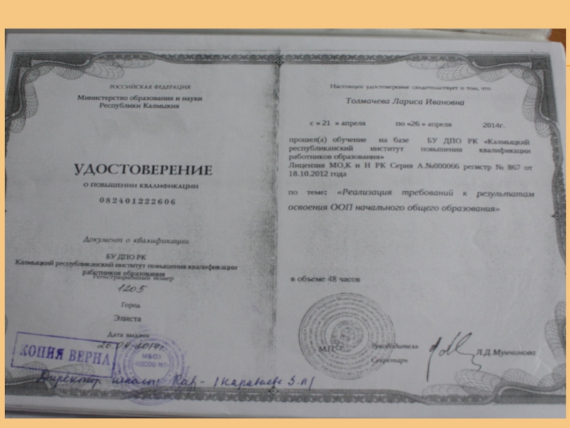 Стаж работы в данном учреждении: 25 лет Квалификационная категория: высшая