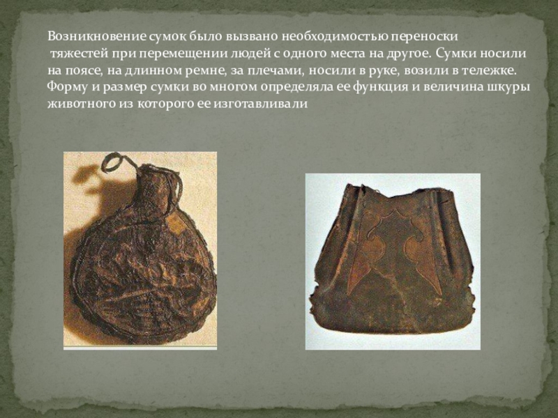 Слайд 9Возникновение сумок было вызвано необходимостью переноски