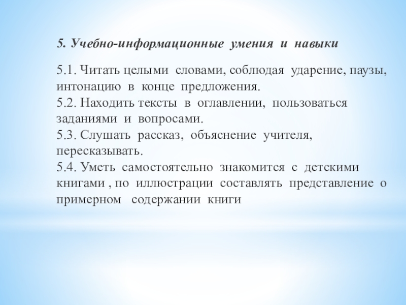 5.1. Читать целыми словами, соблюдая ударение, паузы,