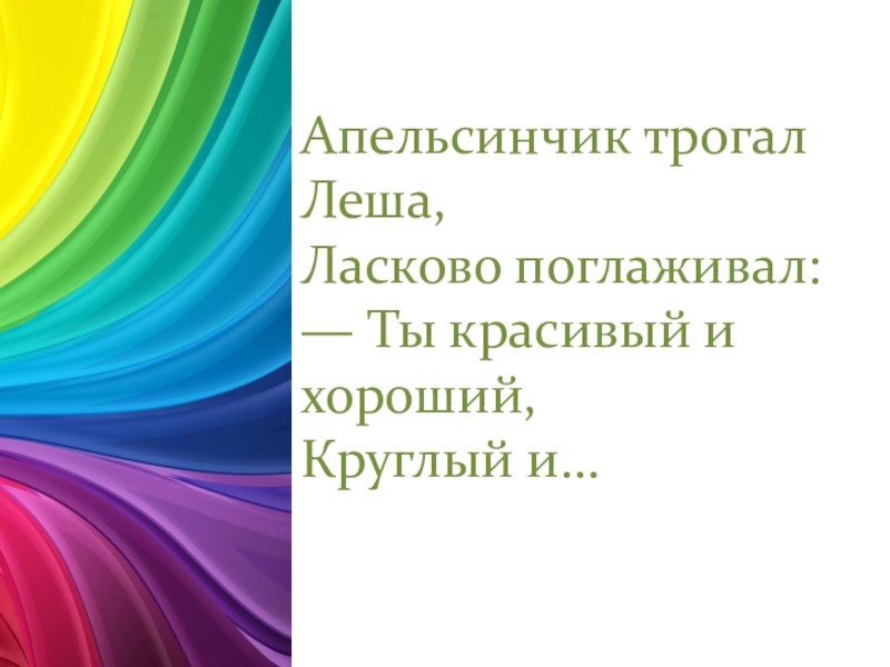 Слайд 8Апельсинчик трогал Леша, Ласково поглаживал: — Ты красивый и хороший, Круглый и…