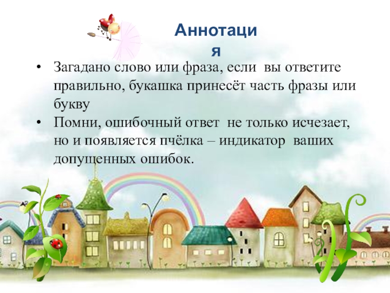 Помни, ошибочный ответ не только исчезает, но и появляется пчёлка – индикатор ваших допущенных ошибок.