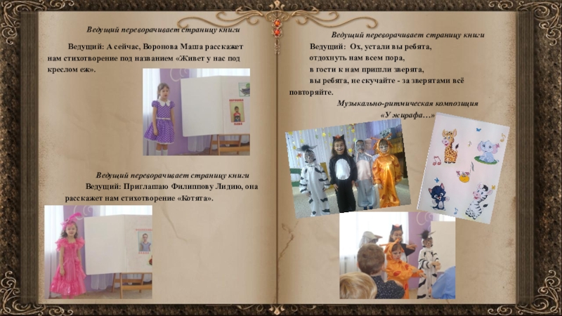 Ведущий: Приглашаю Филиппову Лидию, она расскажет нам стихотворение «Котята».