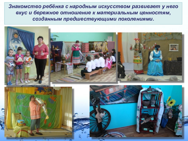 Слайд 6Знакомство ребёнка с народным искусством развивает у него вкус и бережное