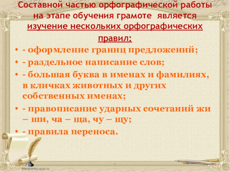 - правописание ударных сочетаний жи – ши, ча – ща, чу – щу;