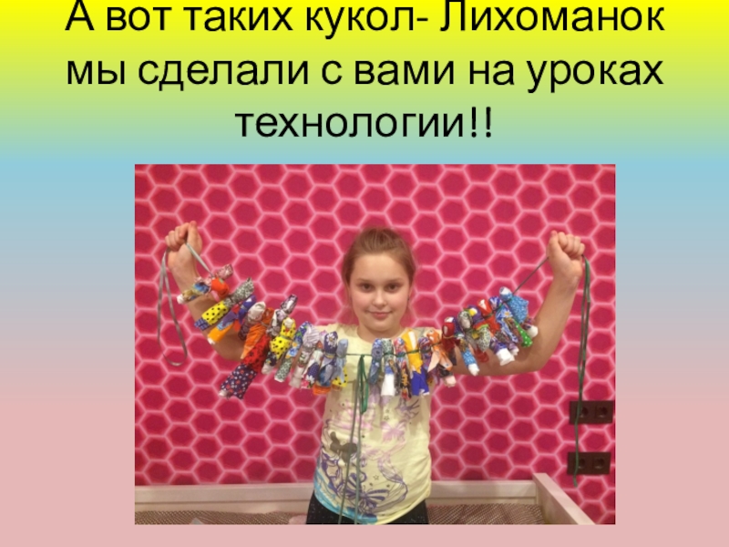 Слайд 9А вот таких кукол- Лихоманок мы сделали с вами на уроках