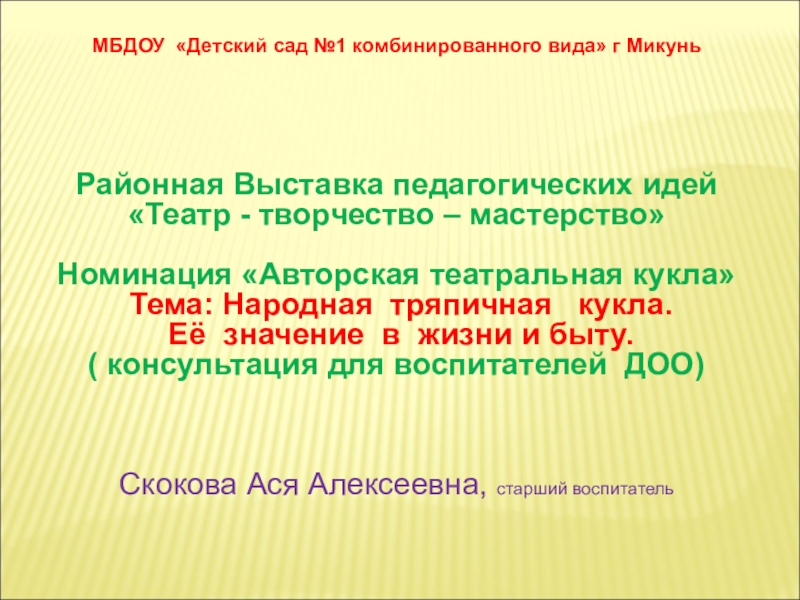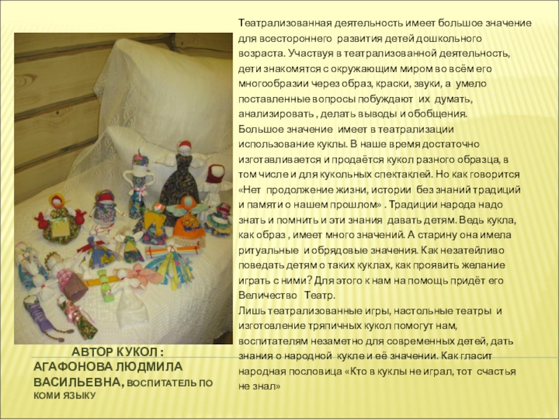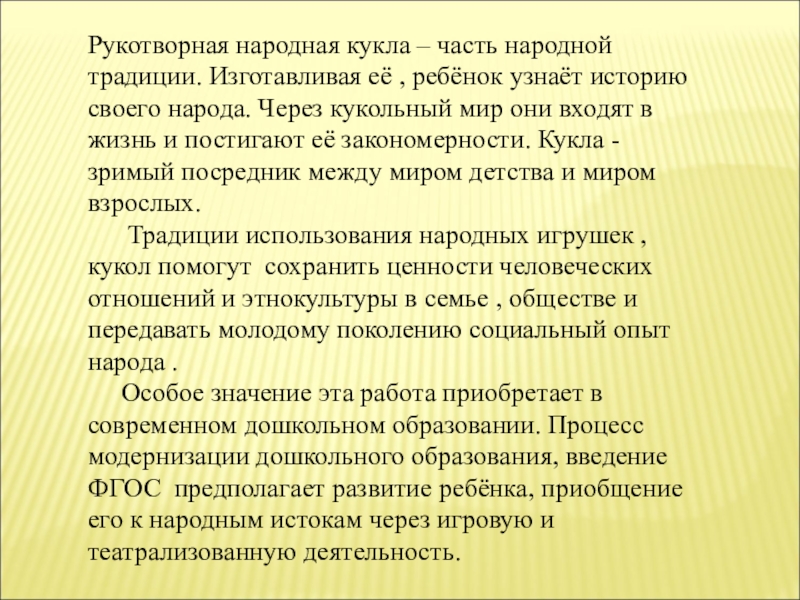 знать и помнить и эти знания давать детям. Ведь кукла,